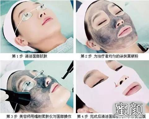 涂抹黑炭粉后,用柔肤镭射以图案扫描,激光能量会顺着碳粉传导到真皮层,当碳粉颗粒爆破后,产生新的胶原纤维和弹力纤维,同时它们会起到支撑和填充细胞间隙的作用,使皮肤细腻有光泽,毛孔收缩。