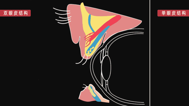 另一方面,在单眼皮中,隔膜的下缘太低,在睑板的上缘前下垂,阻挡了提上睑肌腱膜的向外延伸,使其不能拉动皮肤形成褶皱。
