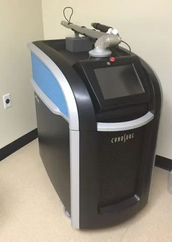 皮秒激光的代表仪器是Picosure,对深褐色斑点有很强的针对性,通过激光的热效应或破坏效应对皮肤深层的色素达到爆破的效果。这种激光的作用时间非常短,相当于一万亿分之一秒,这就是为什么它被称为皮秒激光。