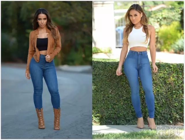 想拥有这样的背影,需要注意的一是身材,二就是裤兜形状,穿不同牛仔裤的金小妹,左图臀翘腿长,右图则显得臀部有些扁平,臀线不清晰,对比明显。