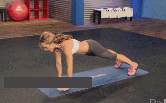双臂伸直,双手撑在瑜伽垫上,双腿并拢伸直,两脚尖撑住地面,保持背部挺直,收紧腹部,然后使双臂交替向前伸直抬高。此动作反复进行30次。