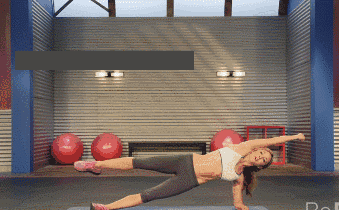 左臂曲肘90度侧撑在瑜伽垫上,右臂向上伸直抬高,双腿并拢伸直,且使右脚一侧撑住地面,保持背部挺直,收紧腹部,使右手慢慢放低,并向左臂内侧伸展,然后再向上伸直。此动作反复进行30次,完成后换另一侧继续。