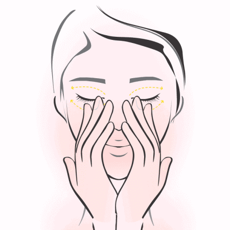 眼角的皱纹是因水分和油脂两方面不足而导致。早晨用眼部保养品补充水分,夜晚则用眼霜补足油脂,让两方面都同时给予补给。眼睛周围的皮肤很纤细,所以使用一只手固定并由外向内渗透里层。