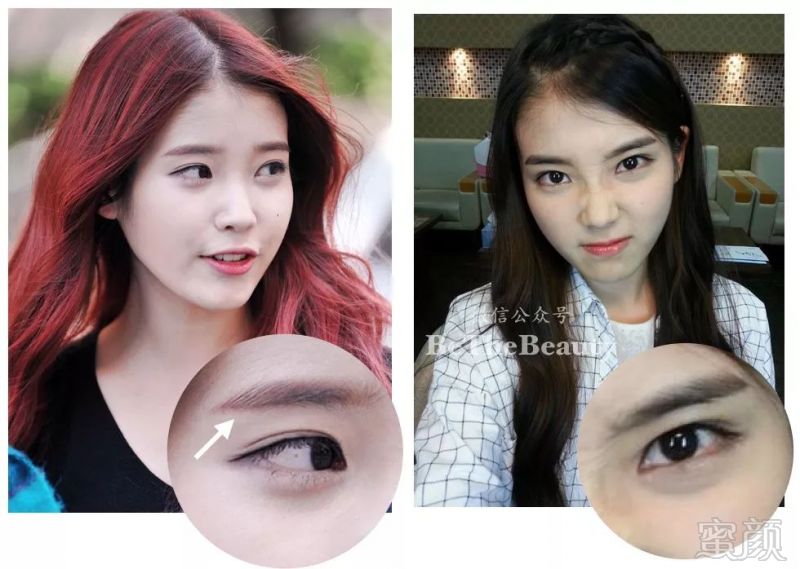 因此,后期的IU眉毛虽然粗,但是偏淡,效果也会更自然。