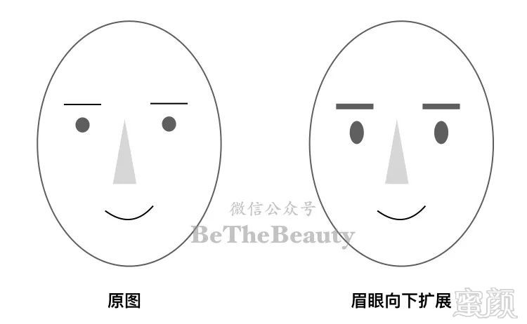 那么眼睛在视觉上会「向上移动」,从而显得鼻子和中庭更长。