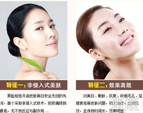 黑脸娃娃是通过将炭粉涂在脸上,渗入毛孔后,再用激光将炭粉粒子爆破,震碎表皮污垢及角质,代谢排出体外。同时刺激皮肤细胞的新生达到美白嫩肤的功效。