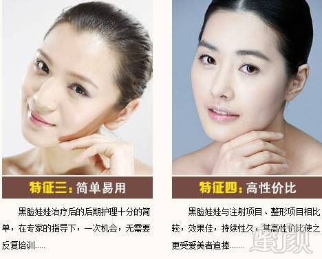 5、黑脸娃娃有没有副作用呢?没有副作用,个别人治疗后会有一点微微发红,很快就会消退,治疗后没有明显的痕迹, 皮肤会变得越来越好。