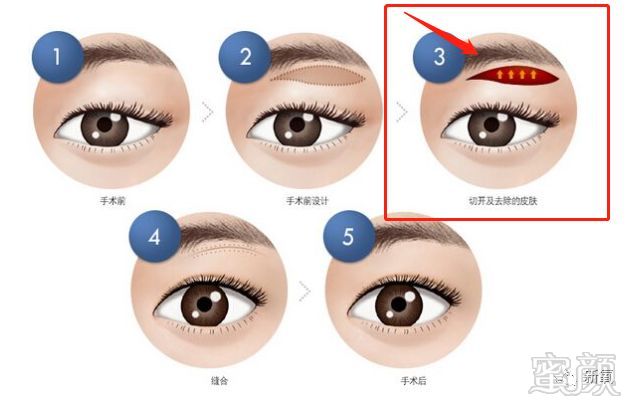 所以切眉就应运而生,切口不在睑板前,而是在眉毛处,这样就可以实现上述想法。