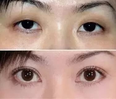 黑眼珠暴露过多会显得眼神凶恶,缺乏女性的柔美感。通过双眼皮和开眼角将略为减轻,眼神由瞠目状变得柔和。