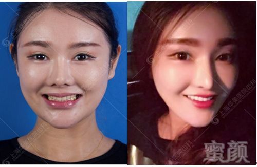 这个女生矫正前是典型的地包天,牙齿反颌导致笑不露齿,像掉了牙的老奶奶一样。别说笑线了,连上牙齿缘都只能勉强能露出一点。