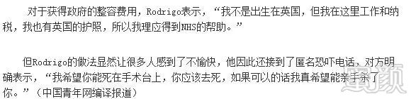 Rodrigo自2004年开始第壹次接受整形手术,仅在过去12个月,他就跑遍了世界各地,花费9.5万英镑接受了20次整形手术。而16年1月,他刚刚在伊朗花费1.5万英镑进行了第6次隆鼻手术。