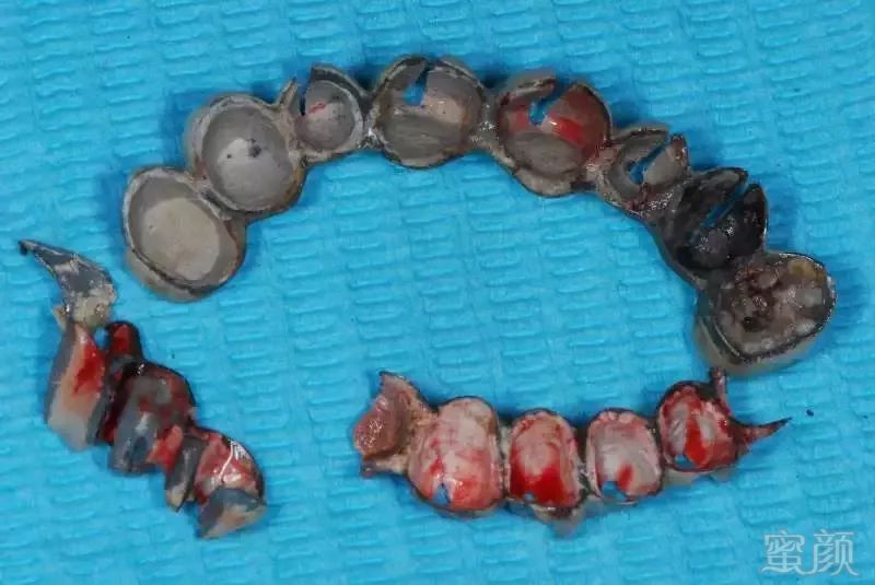 这样的病例实在太多,公立医院和部分高端民营口腔机构每年都要拆除很多例,后续治疗则费时费事费钱费脑筋,而且此类患者来源于社会各阶层,我见过的病例包括一些同事医生(非牙医)的父母,医生的健康意识不代表其家人,而你无法想象其中一例是拥有几百亿资产的企业家,医疗信息不对称应该是主要因素。