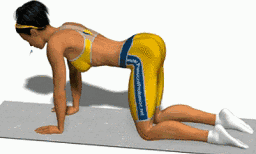 跪姿单脚屈膝蹬腿 左右各15-20次