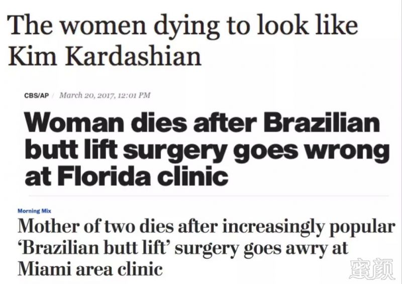 普通整形手术的死亡率是1比55000,巴西提臀术的死亡率是1比3000,高出18倍不止。