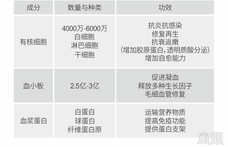 用一张图可以明显看见,自体有核细胞疗法比PRP成分更加丰富: