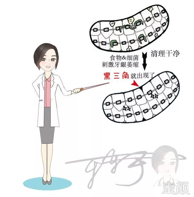 保持口腔卫生,吃完食物后及时刷牙,清理矫正器及牙齿上的残留食物,必要时使用冲牙器配合保持牙齿清洁干净!