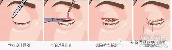 切开眼皮,去除适量的肌肉和脂肪,以及松弛的皮肤,从而形成双眼皮