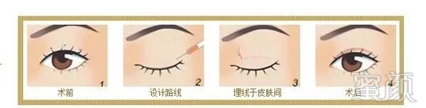 通过缝合方式,在上眼睑处,将比头发还细的手术缝合线埋藏于皮肤和睑板之间,将眼睛褶皱处加深固定,形成双眼皮。