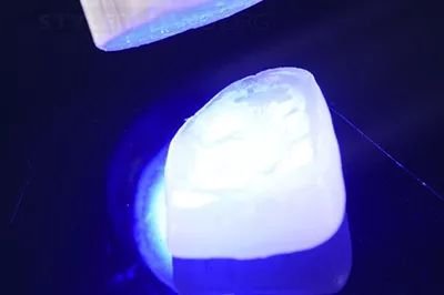 去除较大的多余部分后,通过一个笔刷来平滑边缘并完成去除较小的多余部分。确定所有的边缘都填好了,没有多余的粘固剂,我们就可以进行聚合了。