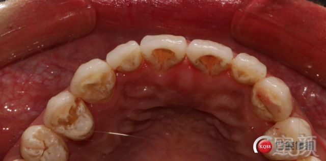 戴临时牙的情况;颜色选择略黄;和最终修复体对比后患者更容易接受。