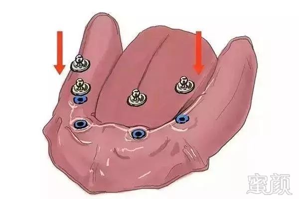 在俩边的牙槽窝植入种植钉